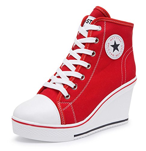 -. Title : (ホーマイ)HOOMAI 送料無料 スニーカー レディース 厚底 ウェッジソール ヒール8cm 大きいサイズ 22.5-26.5cm サイドファスナー レースアップ 結ばない キャンバス ハイカット 5color