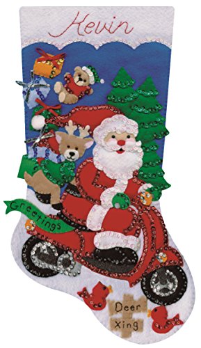 Tobin 5239 N/A Scooter Santa Stocking Felt Applique Kit-18" Long