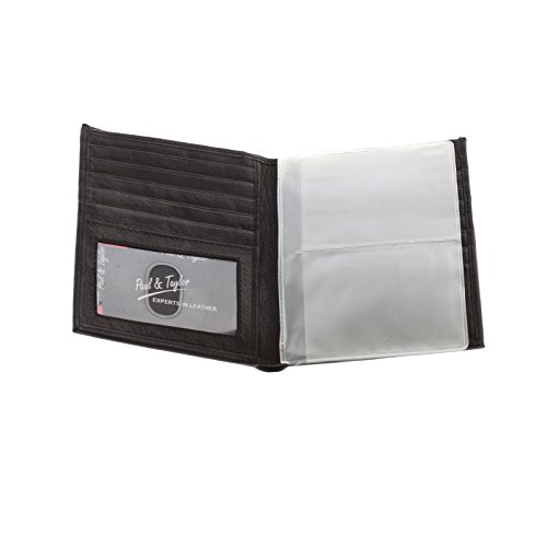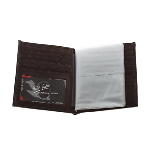 Product Description This big hipster wallet by Paul Taylor is made out of quality hand crafted leather. Features include 2 very large bill compartments, a whopping 13 card slots, 2 hidden pockets and a finger glide ID window. Also included are a key holder and a pull out album with 14 translucent slots for pictures or cards. This wallet is the perfect do-it-all wallet for the modern man. Measures 4.25" x 0.5" x 5" 0