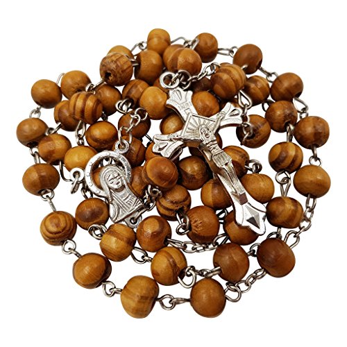 Wood Rosary Beads Catholic Necklace 8mm Wooden Round Bead Jerusalem Rosary Cross Crucifix Virgin Mary Centerpiece with Certificate