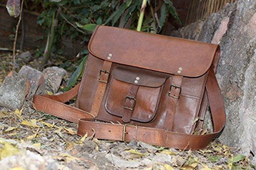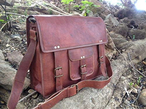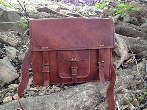 -. Title : Leather Unisex Vintage 100% Genuine Real Leather Messenger Bag for Laptop Briefcase Satche