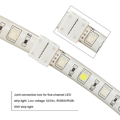 5 Pack 12mm 5-conductor Quick Splitter LED Strip Solderless Connector (Strip to Strip) for RGBW/RGBWW 5050 Color-changing LED Strip Lights, Solder-free, Welding-free Solution