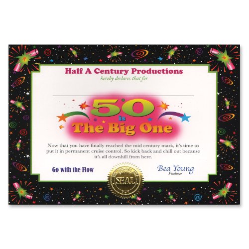 Beistle CG025 6-Pack 50 Is The Big One Certificate, 5-Inch by 7-Inch
