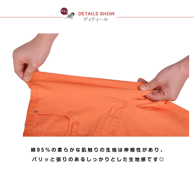 | 豊富なカラーバリエーション!美脚効果抜群なストレッチカラーショートパンツ登場!綿95%の柔かな肌触りの生地はしっかりとした生地感なので、透けにくく安心に穿けます。伸縮性のある生地なので程度よくラインにフィット!動きやすく履き心地もバツグン。シンプルな色味のカラーショーパンはコーデに取り入れやすいのでシーンや気分、スタイルで使い分けたい一枚! | |