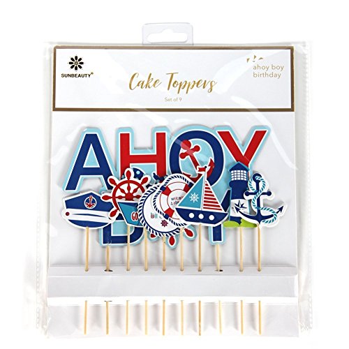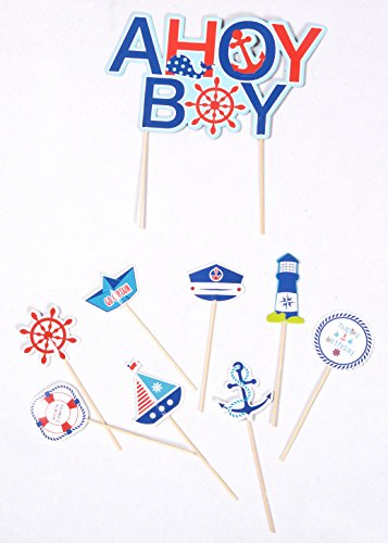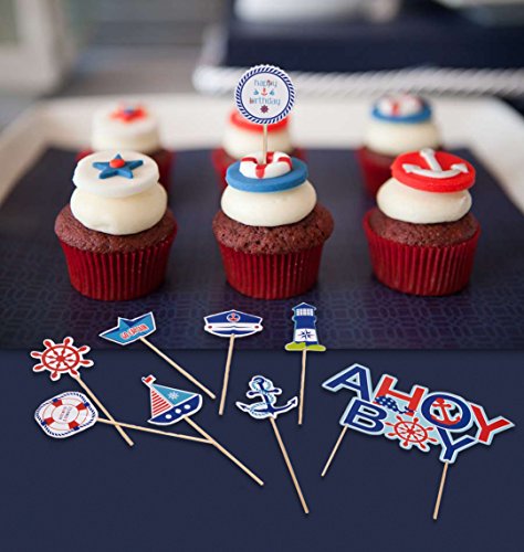 PAPER JAZZ Nautical Party AHOY ocean theme Cupcake Toppers for Baby Boy Birthday Baby Showers Event Party Decoration (AHOY BOY)