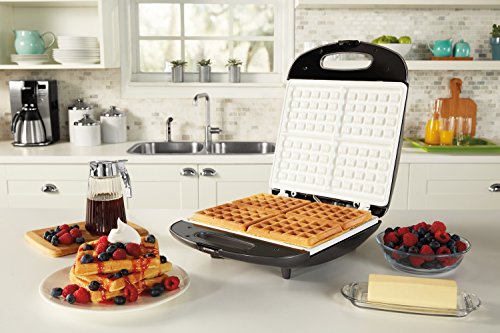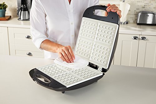 "You’ll feel good serving breakfast with the Oster DuraCeramic Infusion Series Belgian-style waffle maker. Amazing infusion technology layers extra virgin olive oil right into the DuraCeramic coating so you’ll never have to add cooking spray or oils again! This proprietary infusion process prevents the infused oil from becoming spoiled or rancid. This convenience redefines non-stick cooking. Not only can you cook tastier meals, but you can also save on purchasing olive oil. The unique DuraCeramic Infusion Series non-stick ceramic coating is PFOA and PTFE free and lasts 10 times longer and cooks up to 29% faster than ordinary non-stick surfaces plus it won't flake or peel. The large 4-Slice capacity is ideal for preparing delicious waffles for the whole family with easy cleanup. With the Oster brand, you can cook with passion and serve with pleasure. Get cooking with the Oster DuraCeramic Infusion Series products!"Feature
