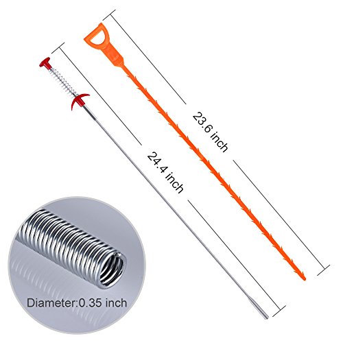 1 stainless steel drain cleaner captures solid obstructions and 3 plastic drain snakes tools hook hair and debris