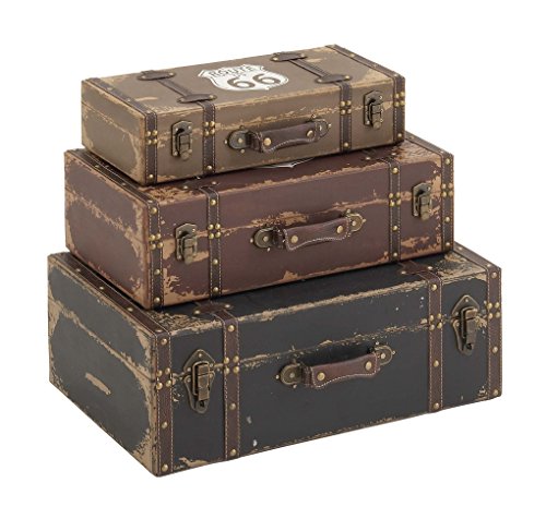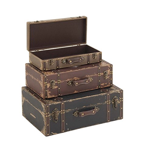 Deco 79 Wood Vinyl Box, 23 by 21 by 18-Inch, Set of 3