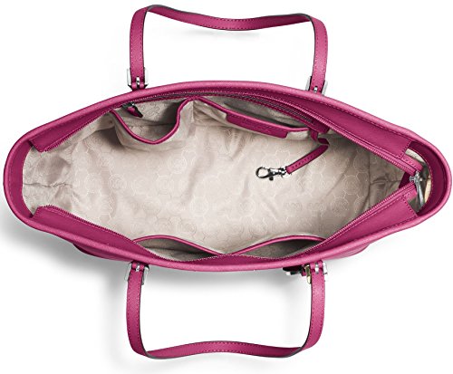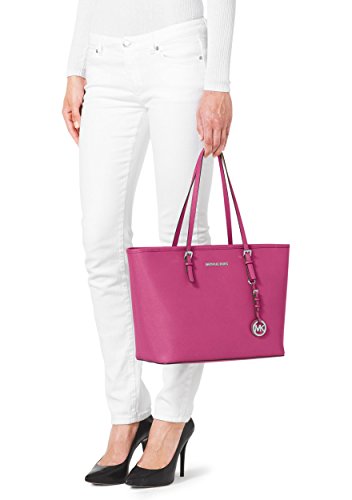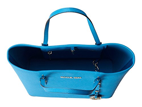 -. Brand : MICHAEL -. ClothingSize : One Size -. Color : green -. Department : unisex-adult (novelty and lage only) -. Feature : Gold- or silver-tone hardware; signature plaque at front; detachable logo charm / Double top handles with 6" drop / Dog clip closure / Interior features zip pocket and slip pocket / Interior clasp key fob -. Label : -. Manufacturer : -. Model : 30H1GTVT1L -. MPN : MKJSTDST3911409 -. NumberOfItems : 1 -. PackageQuantity : 1 -. PartNumber : MKJSTDST3911409 -. ProductGroup : Shoes -. ProductTypeName : HANDBAG -. Publisher : -. Size : One Size -. Studio : -. Title : MICHAEL Jet Set Small Travel Tote