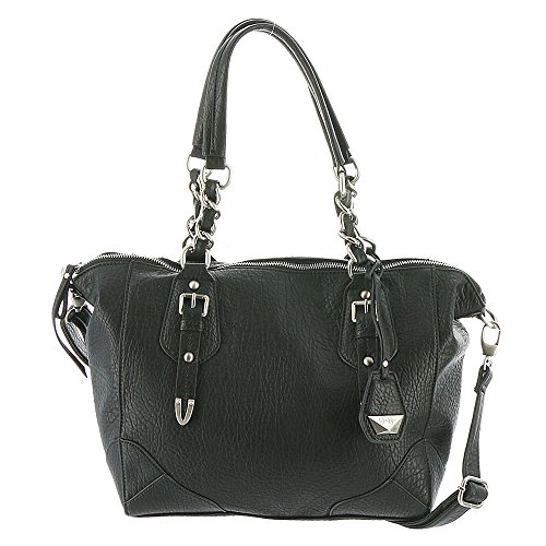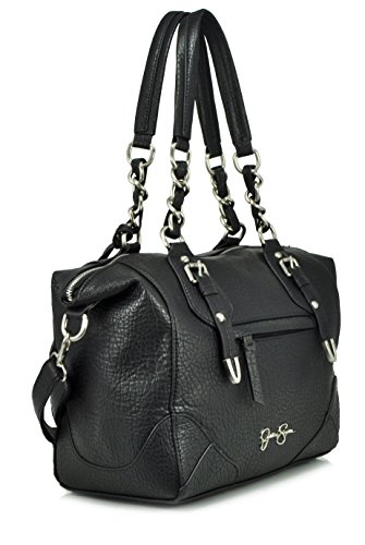 This structured satchel is the perfect counterpoint to the season's flowy, flirty fashionsSynthetic materialDouble carry handles with chain detailsRemovable, adjustable crossbody strapTop zipper closureInside has two slider pockets and one back wall zip pocketOutside has a back zipper pocketRemovable Jessica Simpson logo fob17.5"Lx6"Dx9"HFeature