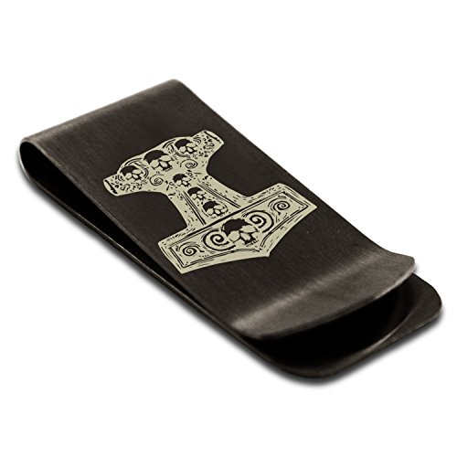 (Tioneer)/Accessories/Wallets, Money Key Organizers/DIRECT FROM USA/Stainless Steel Mjolnir Thor's Black Skull Hammer Symbol Engraved Money Clip Credit Card Holder