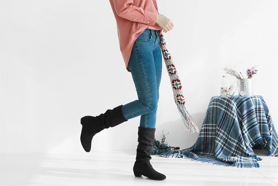 소프트한 감촉으로 기분까지 좋아지는 스웨이드 스판 롱부츠 입니다