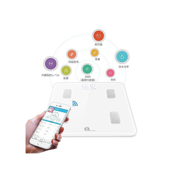 원본상품명: 1byone ?重·?組成計·?脂肪計 スマ?トスケ?ル ?重 / ?脂肪率 / ?水分率 / 推定骨量 / 基礎代謝量 / ??脂肪レベル / BMIなど測定可能 Bluetooth?? iOS /