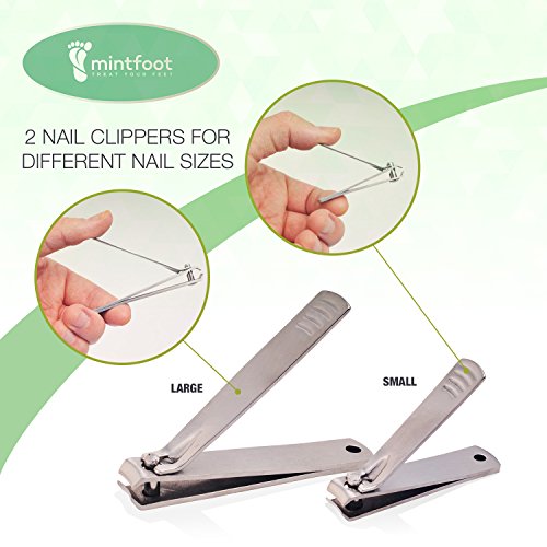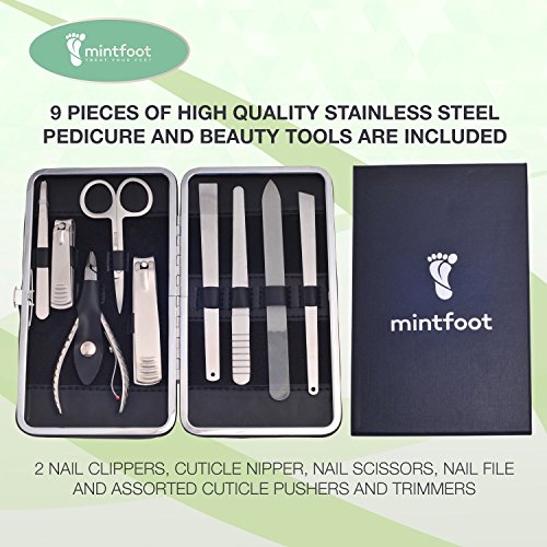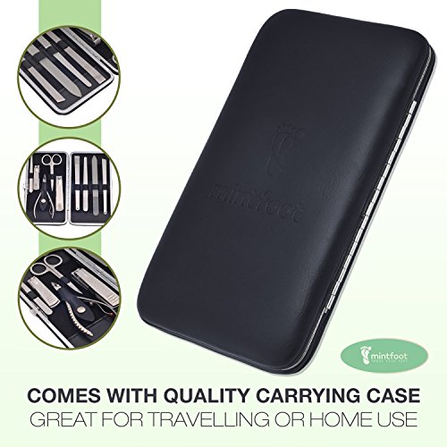 Studio : Mintfoot Publisher : Mintfoot Product Description A MANICURE SET EVERYONE CAN USE: Take care of your whole family's foot and nail care needs with this set! High quality manicure pedicure supplies can be used by boys, girls, teens, men, women, and the elderly. QUALITY TOOLS AND CONSTRUCTION: You want your nail care equipment to be kind to each hand, finger, foot and nail. Our pointed grooming scissors, tweezers for eyebrows, cuticle nippers, precision fingernail clipper, and deluxe organizer bag are made to last, and will be essentials in caring for your hands and feet HELPS YOU STAY HEALTHY: Antifungal nail treatment and fungus removal is no fun. You help to prevent nail fungus from affecting your fingernails and toenails when you use these accessories. Other sets may include utensils and devices that don't work as well for personal care, but our kits have tools with the shape and slant you need to take care of thicker nails without using pliers or a knife. Comodo y portatil: Mira lo mejor posible, sin importar donde se encuentre. pedicura manicura de Mintfoot incluye todos los suministros de pedicura que pueda necesitar, en un comodo recorrido de la manicura establecido para los hombres o las mujeres. Cada cortador corta unas con unas y es agudo y listo para usar en casa o en la calle. 0