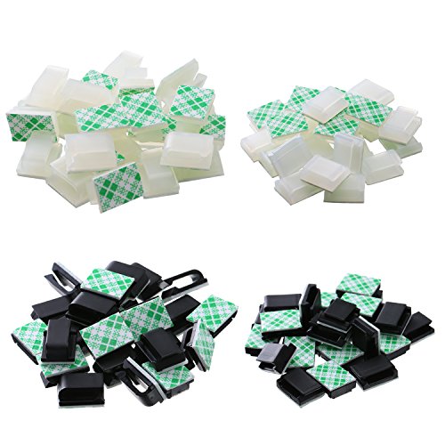 eBoot 100 Pieces Adhesive Cable Clips Drop Cable Management Clips Wire Cord Holder, 2 Sizes, 2 Color