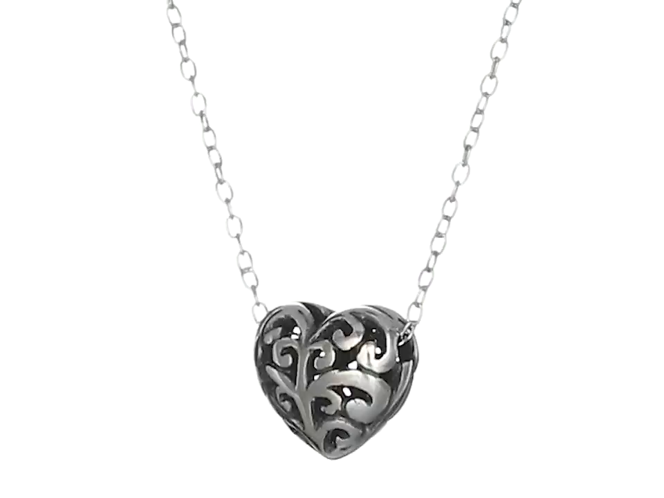 Sterling Silver Oxidized Filigree Heart Earrings and Necklace Jewelry Set