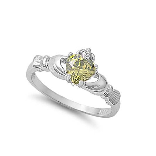 -. Feature : METAL: .925 STERLING SIVLER / STONE: All Natural Genuine appox. 2ctw AUGUST PERIDOT HEART BIRTHSTONE / FACE WIDTH: 9MM / BAND WIDTH: 2MM / A MUST HAVE FOR ANY CELTIC CLADDAGH COLLECTON!