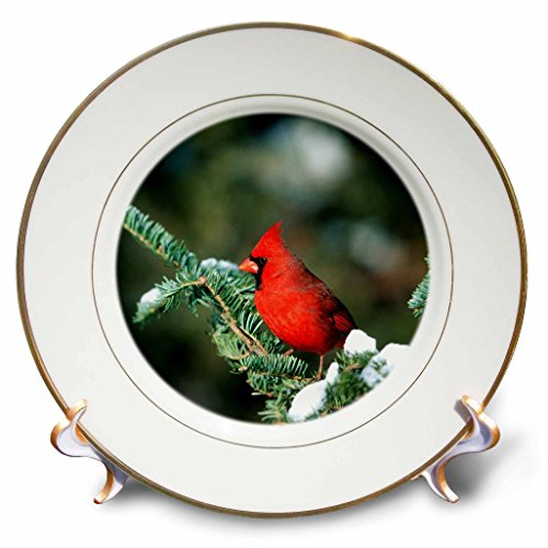 3D Rose Northern Cardinal Male in Fir Tree in Winter Marion County-Illinois Porcelain Plate, 8"