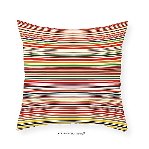 (VROSELV)/Kids' Furniture Room Decor/Room Decor/DIRECT FROM USA/VROSELV Custom Cotton Linen Pillowcase Vivid Horizontal Colorful Striped Lines Background Rainb...