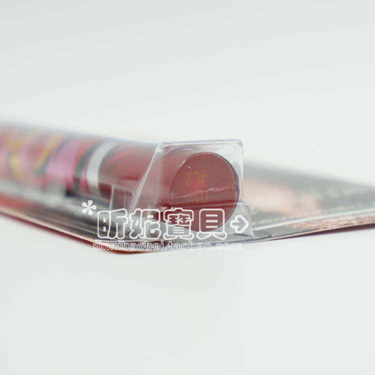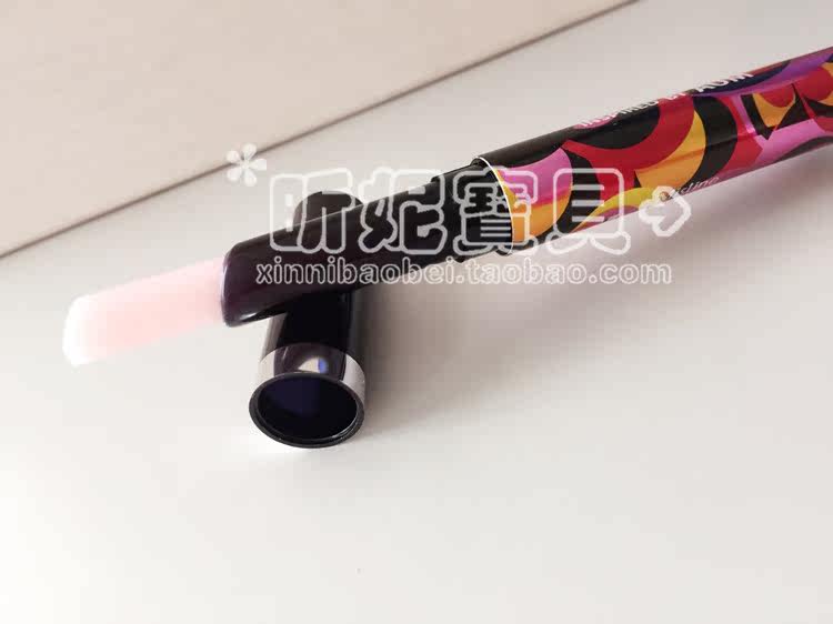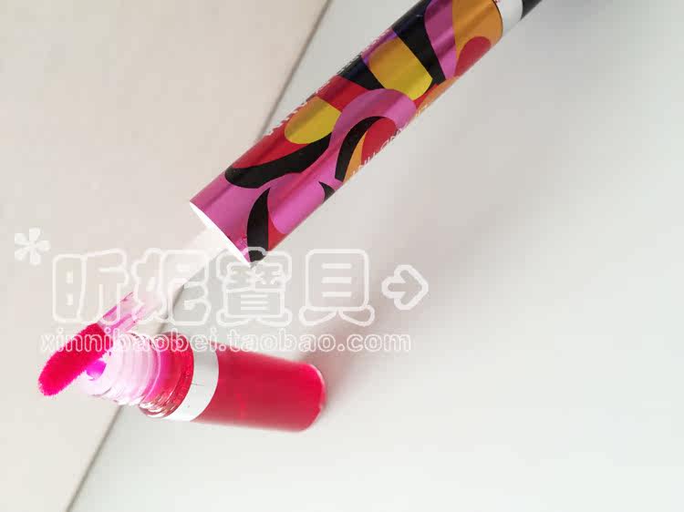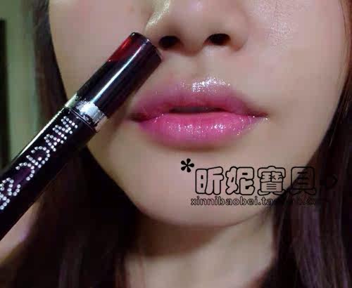 这个是双头的,红色那边是染色唇彩,不容易脱色,打造自然咬唇妆的利器。这点要提醒大家注意。染色唇彩的缺点是无油,有点干所以单头的染色唇彩不容易做出逼真的咬唇效果来,这款唇彩是双头的