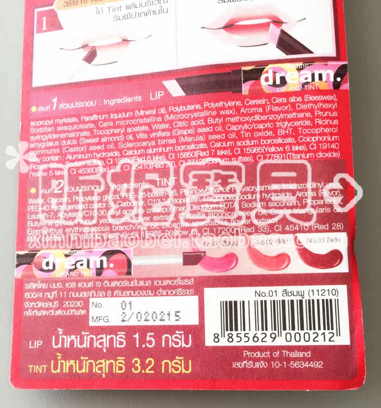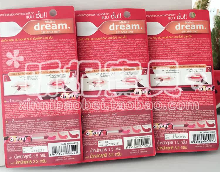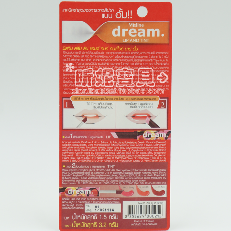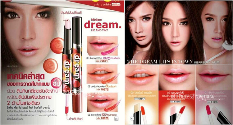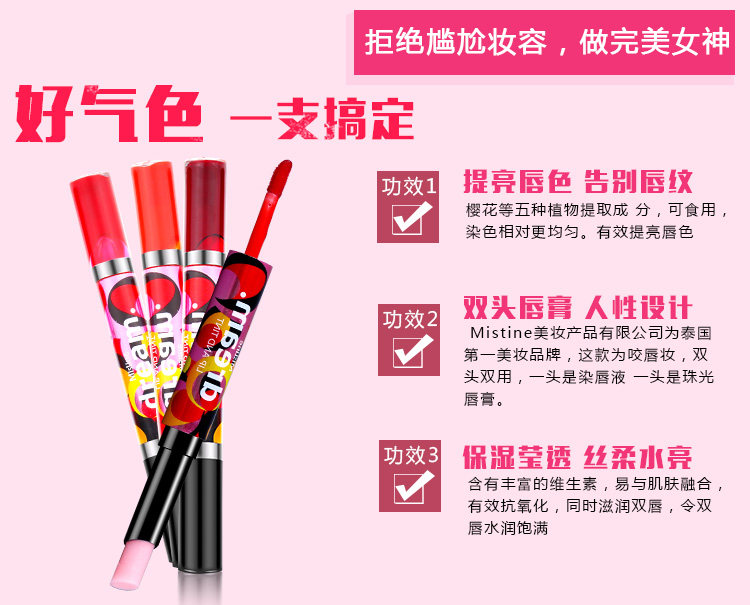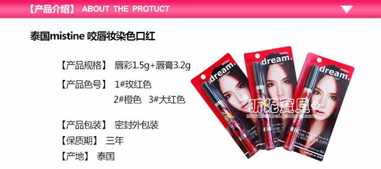 泰国Mistine dream 双头唇膏 咬唇妆唇彩染唇液不脱色 粉橘红三色,泰国性感女神AumP最爱并倾情代言,这是今年的最新款!