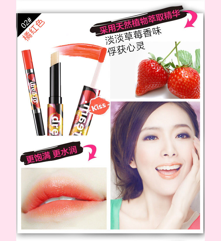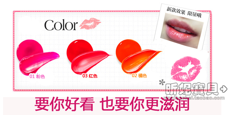 3.涂抹于嘴唇外侧,如果覆盖在内侧,染色会更容易脱一些,可以让唇色更搭配,而且也滋润,不用再买其他唇部产品来搭配了