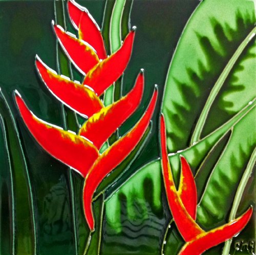 Continental Art Center BD-0352 8 by 8-Inch Orange Heliconia Ceramic Art Tile