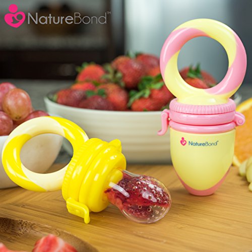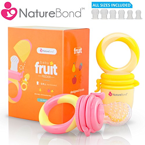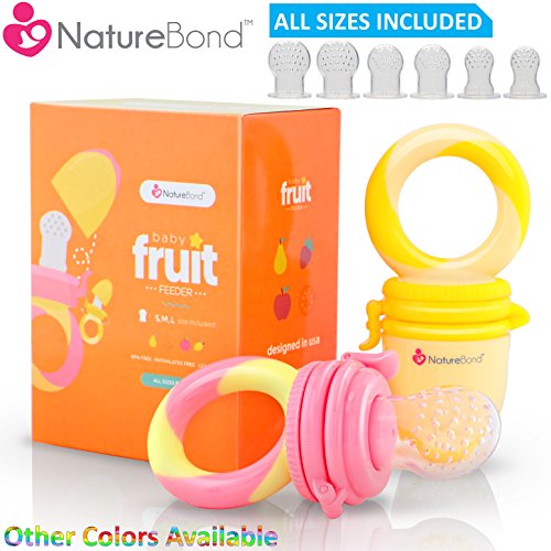 The NatureBondTM Baby Fruit Feeders are both a fruit feeder and teething toy. The package comes with 2 feeders. The sacs can be used to store fresh or frozen fruits, vegetables and ice chips. Most importantly, it provides a safe method for our little ones to enjoy the natural vitamins and nutrients from fruits pulps and juices without the dangers of choking.