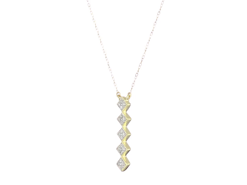10k Yellow Gold Diamond Geometric Vertical Pendant Necklace (1/10cttw, I2-I3 Clarity)