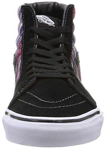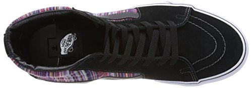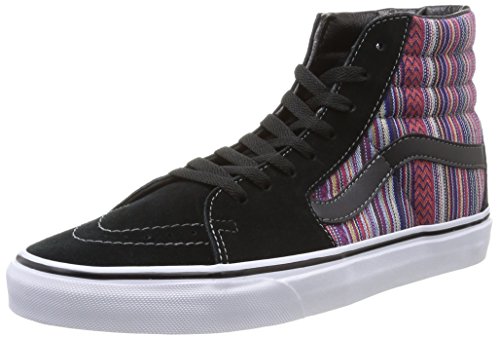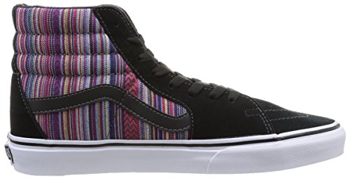 -. Feature : The style name / style number is Sk8-Hi / / Color: Black/Multi / Material: Basic Textile Upper and Rubber Outsole / Measurements: 1" heel / Width: D(M)