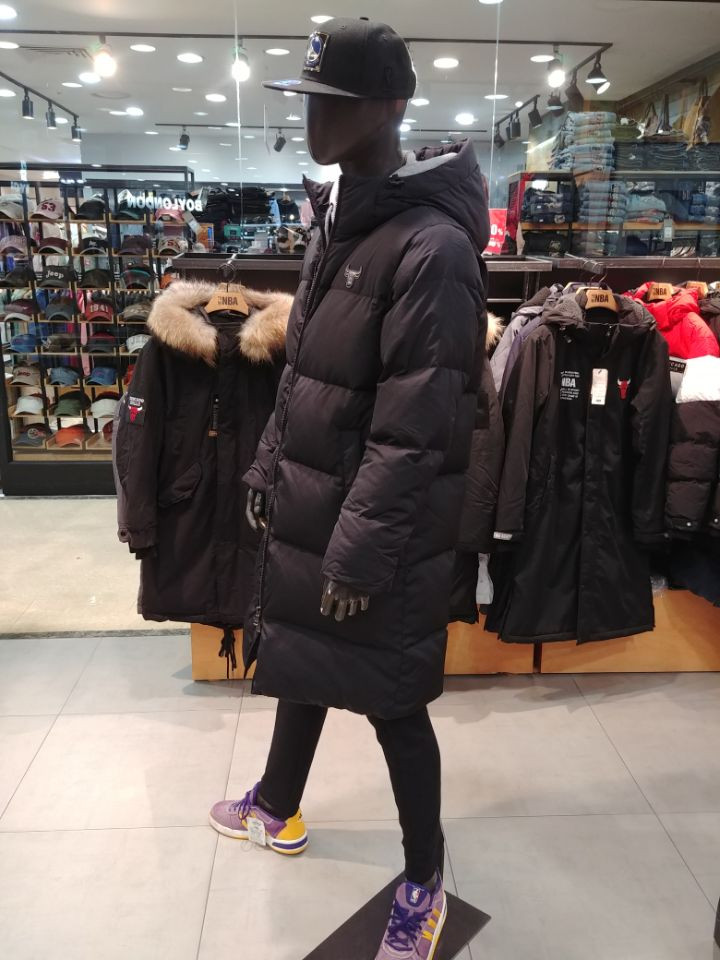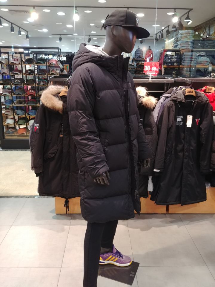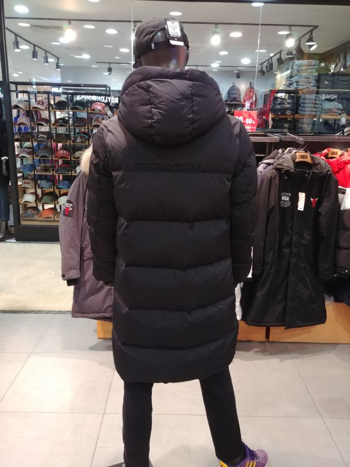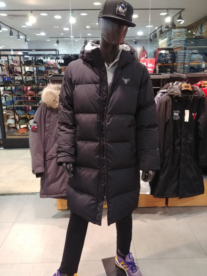 무릎까지 내려오는 긴기장과 심플한 가슴로고로