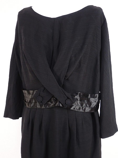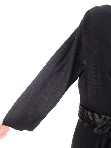 Ladies ブランド- カラー黒 メール便不可 コンディション★★★ 素材ポリエステル・レーヨンと思われます。 表記サイズ記載なし スタッフコメント右脇リペア跡があります。 実寸サイズ 着丈 100 cm 身幅 51 cm 袖丈 51 cmラグラン袖の為、襟元から袖先までの計測 ウエスト 86 cm ※ウエスト・ヒップ以外は平置き採寸【code】#d