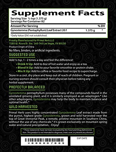Gynostemma Jiaogulan Extract Powder - Potent 20:1 Extract Powder - 82 Servings - Longevity Tonic - Full Spectrum