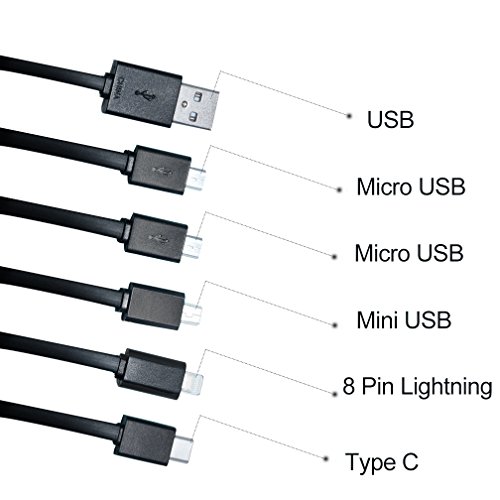 ★MULTIFUNCTION : Including 1 USB C,1 8-pin Lightning connector,2 Micro USB,1 Mini USB,1 USB A 2.0.[Please note: This cable is Not MFI certified and Not support Sync Data]