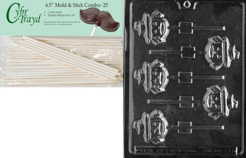 Cybrtrayd 45St25-H011 Face Scarecrow Lolly Halloween Chocolate Candy Mold with 25 4.5-Inch Lollipop Sticks