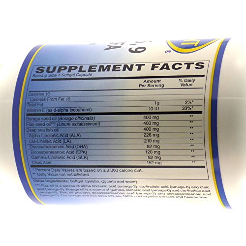 Studio : Vitamin Discount Center Publisher : Vitamin Discount Center Product Description Flax oil is a source of alpha linolenic acid (omega-3), cis-linoleic acid (omega-6) and oleic acid (omega-9). Borage oil is a source of gamma-linolenic acid (omega-6) and cis-linoleic acid(omega-6). Flax oil provides docosahexaenoic acid (omega-3) and eicosapentaenic acid (omega-3). Our borage and flax seed oils are 100% cold expeller pressed and hexane free. These healthy fats work together to support heart, skin and brain health and fight inflammation. Take (1) one softgel capsule per serving. These statements have not been evaluated by the Food and Drug Administration. This product is not intended to diagnose, treat, cure, or prevent any disease. 0