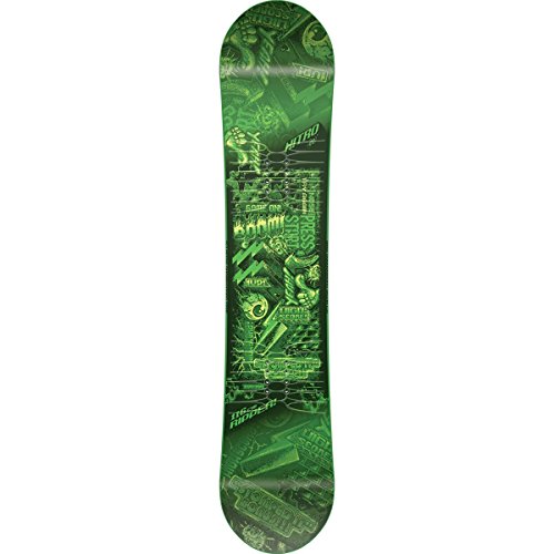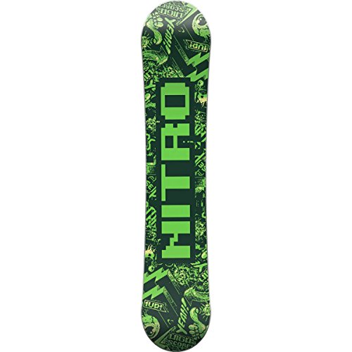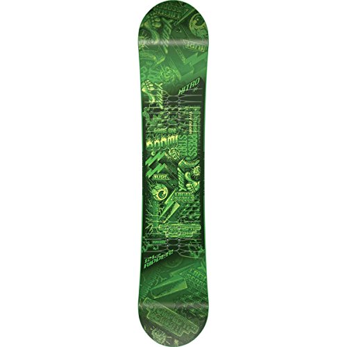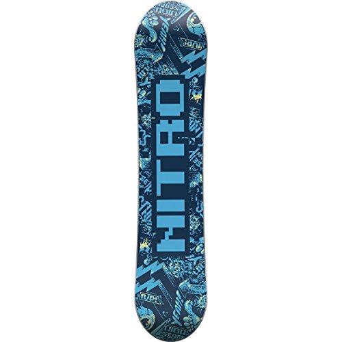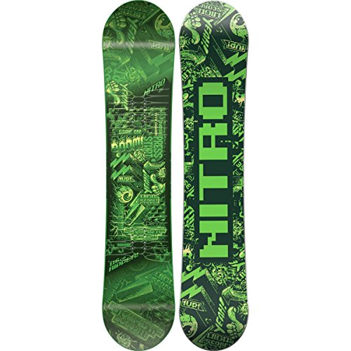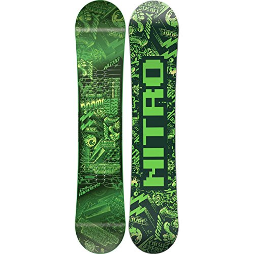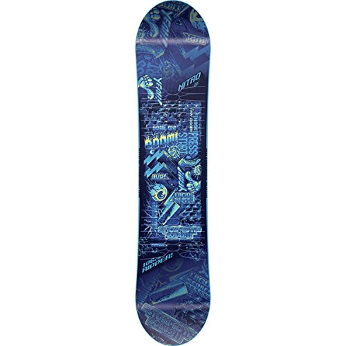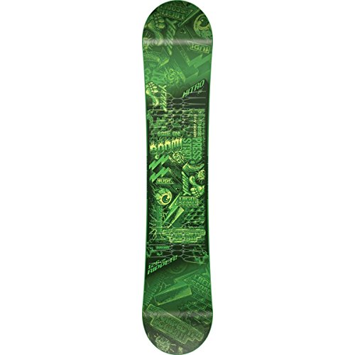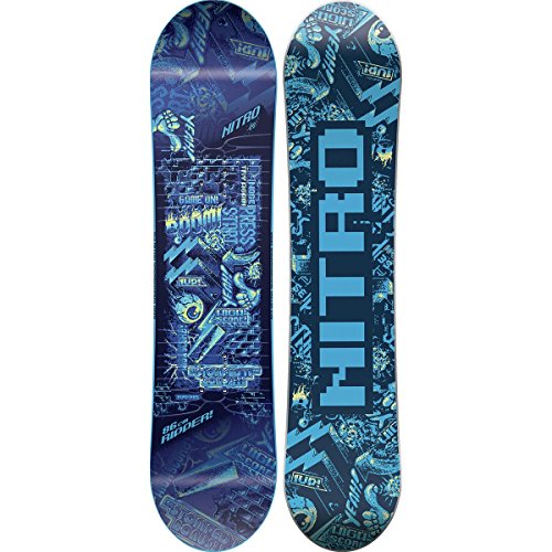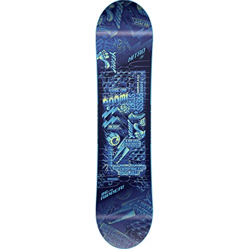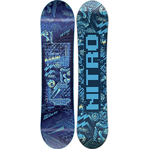 Studio : Nitro Publisher : Nitro Binding : Misc. Product Description Nitro knows better than shrinking an adult board, slapping some goofy graphics on it, and expecting it work for still-growing groms. Thanks to a forgiving youth-specific flex and stable, catch-free flat profile, the Kids' Ripper Snowboard is fully equipped to get your kid on the fast track to a life of shredding. A flat profile gives it a stable feel and makes it harder to catch an edge, and the twin shape means it can be ridden either way equally well. A soft flex and a radial sidecut makes it easy to maneuver for carves that feel almost effortless. Plus, the Premium Extruded FH base is easy to repair if he or she dings it up in the park. 0