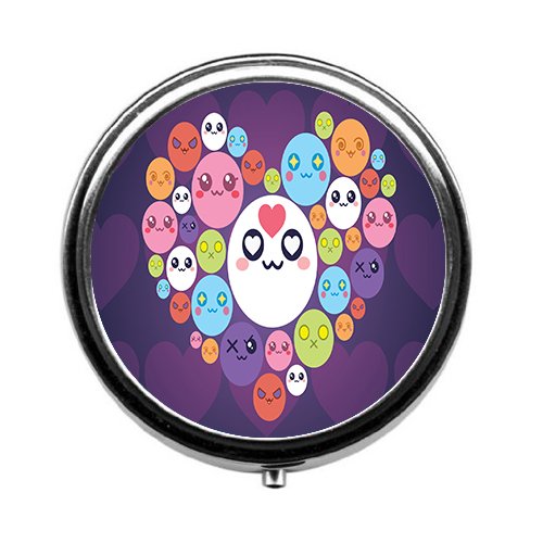 Heart-shaped smile figure Round pill box/pill case-• 3 Compartments for Keeping Pills Separate pill box/pill case