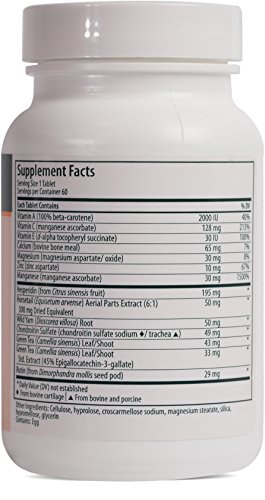 TCO Forte provides chondroitin sulfate along with a well-balanced proportion of synergistic nutrients, selected to support the health of tissue and bones. Helps the body to metabolize carbohydrates, fats and proteins; Helps in tissue formation, helps to maintain proper muscle function; helps to maintain eyesight, skin, membranes and immune function; helps in the development and maintenance of night vision; helps in the development and maintenance of bones, cartilage, teeth and gums; helps in connective tissue formation; helps in wound healing; an antioxidant for the maintenance of good health.Feature
