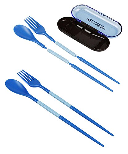 -. Feature : 3 in 1 compact utensil set with plastic storage case / Utensil can be snapped into a pair of chopsticks, spoon, or fork / Size: 4.7 by 1.8 by 1.1 inches, Material: Plastic / Great for everyday use, traveling, or when camping / JAVOedge is a registered trademark and is exclusively distributed by JAVOedge. Other seller offerings are counterfeits, they will not be identical to what is advertised here.