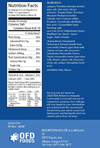 Mountain House Lasagna w/ Sauce #10 Can Freeze Dried Food - 6 Cans Per Case NEW!