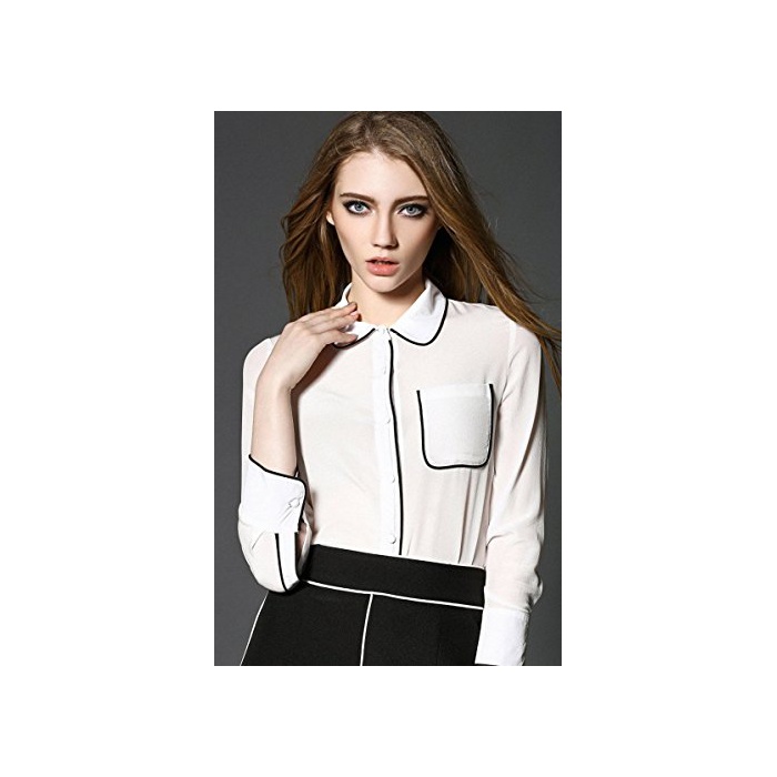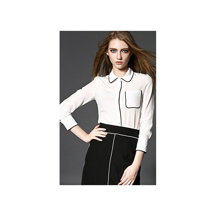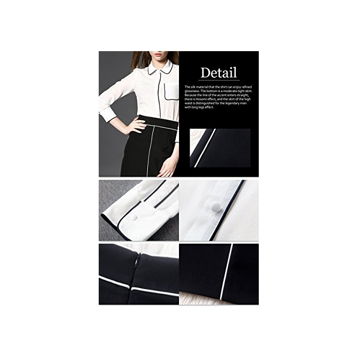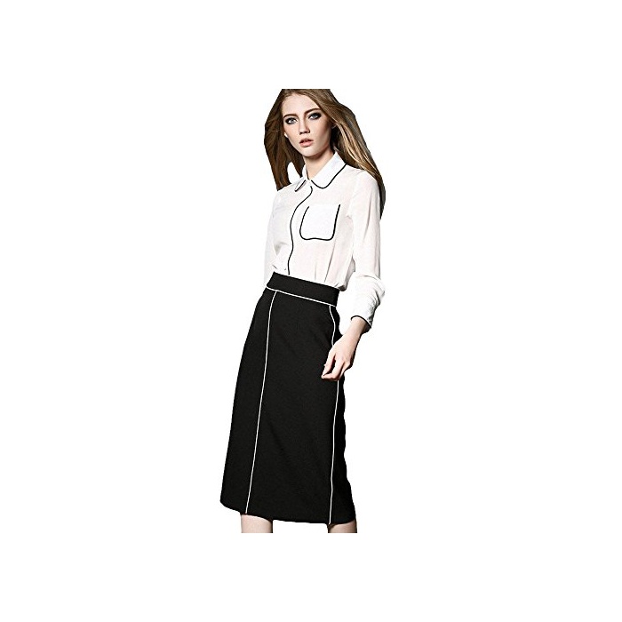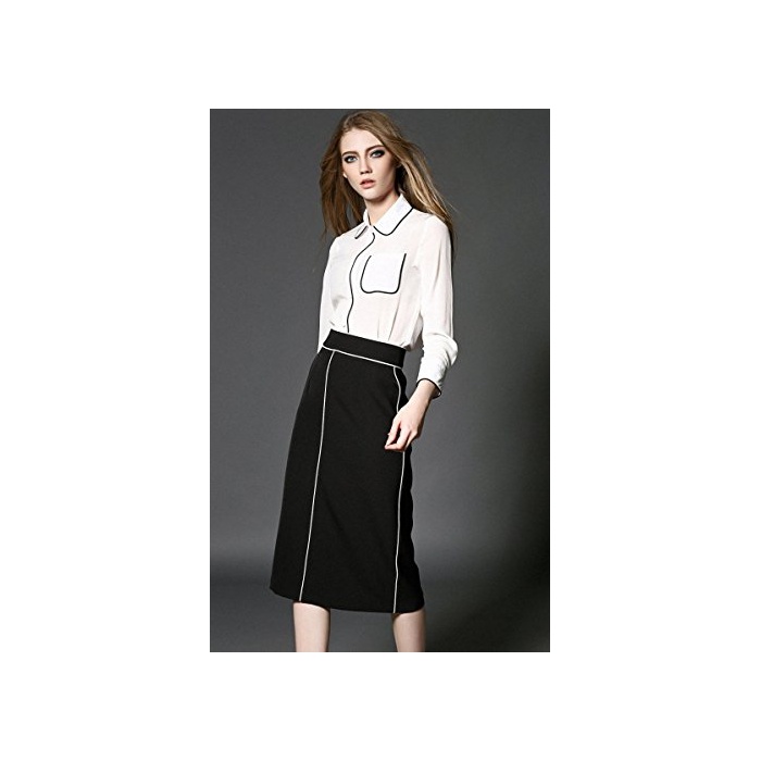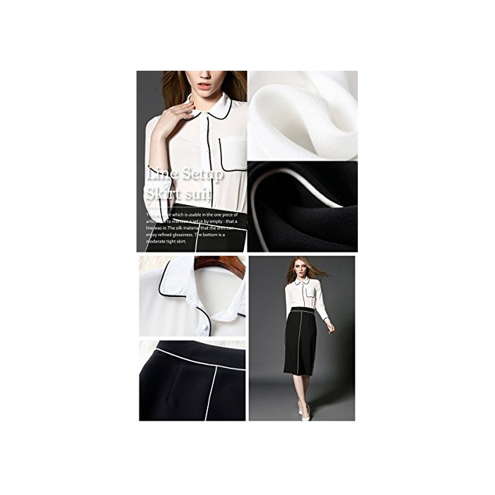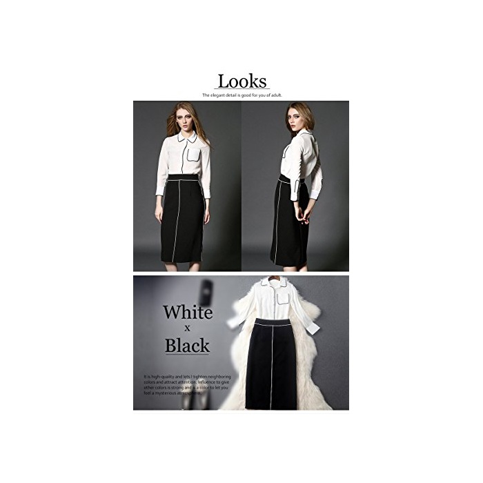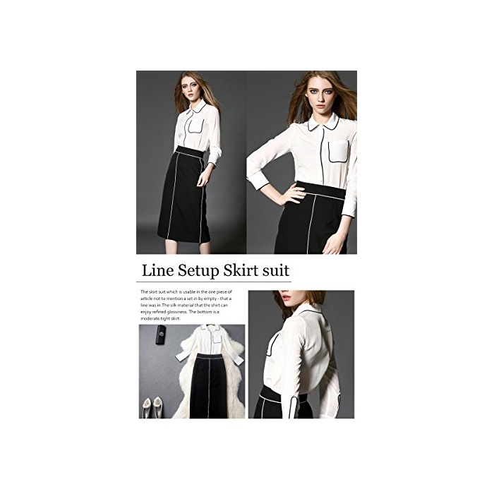 A la mode 화이트×블랙 LL (a la mode)아라모드 어른 엘레강트고급 상하 세트 라인 들어간 바이 컬러― X《―츠》 셔츠 톱스 스커트 파티 레이디스 2점 세트 불리 결