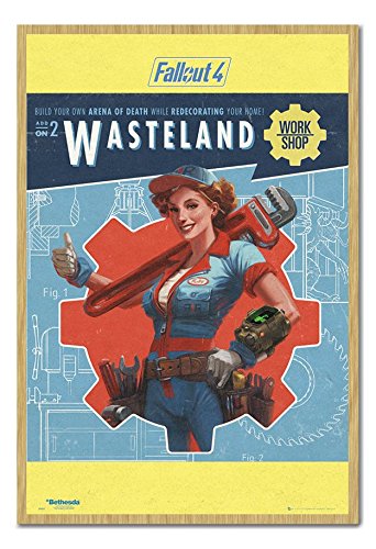 -. Title : Fallout 4 Wasteland Work Shop Poster Magnetic Notice Board Beech Framed - 96.5 x 66 cms (Approx 38 x 26 inches)