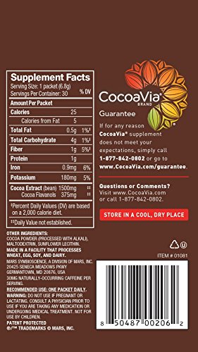 CocoaVia Unsweetened Dark Chocolate, 375 mg, 30 Count