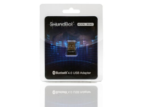 Plug and play Bluetooth USB adapter creates cable-free connections between your PCs and other Bluetooth devices such as Bluetooth enabled headsets, speakers, cell phones, keyboard or mouse at speeds of up to 3 Mbps. Highlights -TEACH THE OLD DOG THE NEW TRICK: Go wireless with advanced Bluetooth technology! SoundBot SB340 Bluetooth adapter converts Windows or Mac computers into Bluetooth 4.0 compatible devices in a wireless environment with class 2 effective high transfer data rate and low latency energy consumption technology with gold plated connector. -PLUG & PLAY: Bluetooth USB adapter creates cable-free connections between your PCs and other Bluetooth devices such as tablets, cell phones, headsets, speakers, smartphone, Apple iPad, iPhone, Galaxy, Android tablet, keyboard or mouse at speed of up to 3 Mbps from up to 33 feet away. -UNIVERSAL COMPATIBILITY: High efficiency and eco-friendly Bluetooth 4.0 technology that is legacy forward/backward compatible to all Bluetooth-enabled media player devices such as Smartphones, iPhone, iPad, iPod, Mac, MacBook, Android, Tablet, Laptop, Desktop, PC, MP3 players and much more! Supports advanced A2DP (Advanced Audio Distribution Profile) & ARVCP (Audio/Video Remote Control Profile) -COMPACT & LIGHT WEIGHT DESIGN: Well integrated with computer and other media devices to feel like a built-in device. Portable and yet powerful. Supports windows 8, windows 7, XP, Vista, 2003, 2000 Me 64/32 bit and Mac OS. -VERSATILE: Ideal for office and/or entertainment use, wireless speaker, wireless headphone/headset, hands-free talking, music playback, mouse and keyboard, wireless communication chatting,...etc. who enjoys tangle free environment from up to 33 feet away