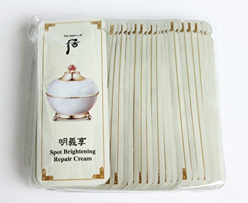 -. Binding : Misc. -. Brand : The History of Whoo -. EAN : 8805552147850 -. Feature : Spot Brightening and Hypo-allergic cream that applies 3 main secret method of Chinese medicine of royal court which cured skin disease of King and empress. / Repairs skin from stimulation and promotes improvement of skin. -. IsAdultProduct : 0 -. Label : LG Household & Health Care -. Manufacturer : LG Household & Health Care -. MPN : EA -. PackageQuantity : 1 -. PartNumber : EA -. ProductGroup : Beauty -. ProductTypeName : BEAUTY -. Publisher : LG Household & Health Care -. Studio : LG Household & Health Care -. Title : 30 X The History of Whoo Myeonguihyang Spot Brightening Repair Cream 1ml x 30pcs Total 30ml 2016 New Version Super Saver than Normal Size