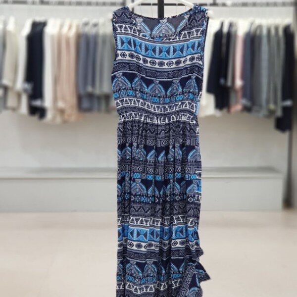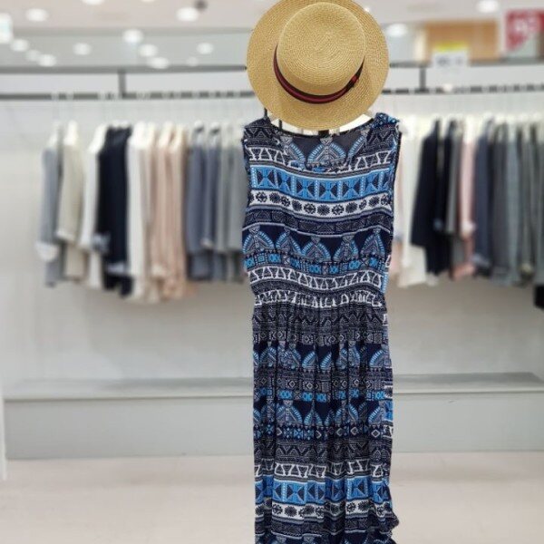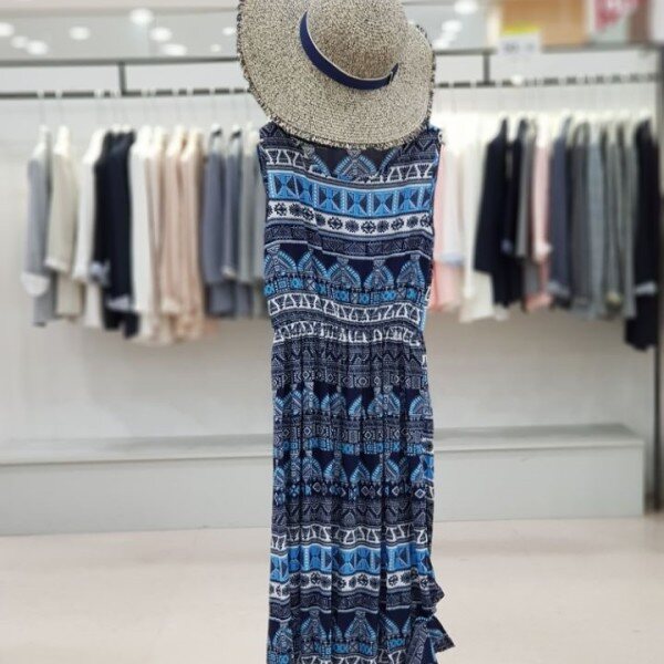 파란 바다를 연상시키는 시원하고 산뜻한 패턴의 원피스입니다.허리밴딩이 있어 라인을 잡아주며, 롱한 길이감으로 체형커버에도 좋은 상품입니다.여름 내 맑고 시원한 기분으로 즐겨입기 좋은 상품입니다.