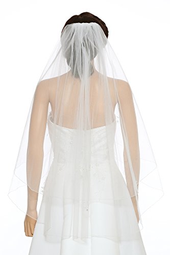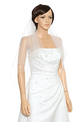 (SAMKY)/Accessories/Scarves/DIRECT FROM USA/2T 2 Tier Crystals Floral Beaded Wedding Veil V333 - Ivory Fingertip Length 36"