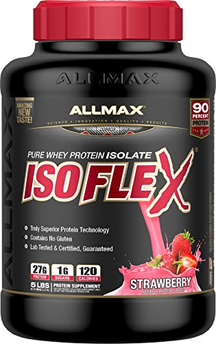 ALLMAX ISOFLEX Whey Protein Isolate, 90% Pure Protein, Amazing Taste, Strawberry Flavor, 5 Pound