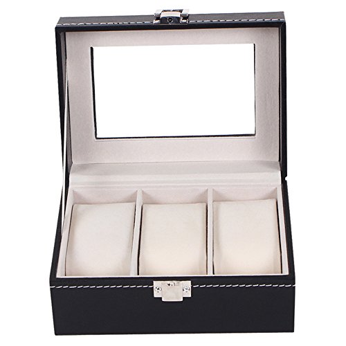 Iremico 2/3/6 Slot Mens PU leather Watch Display Box Organizer Case -(3 Grid)